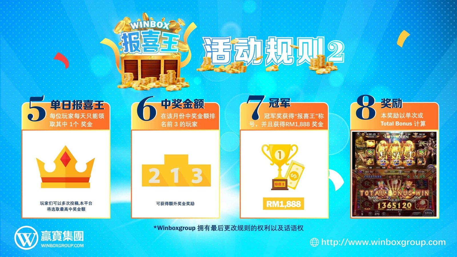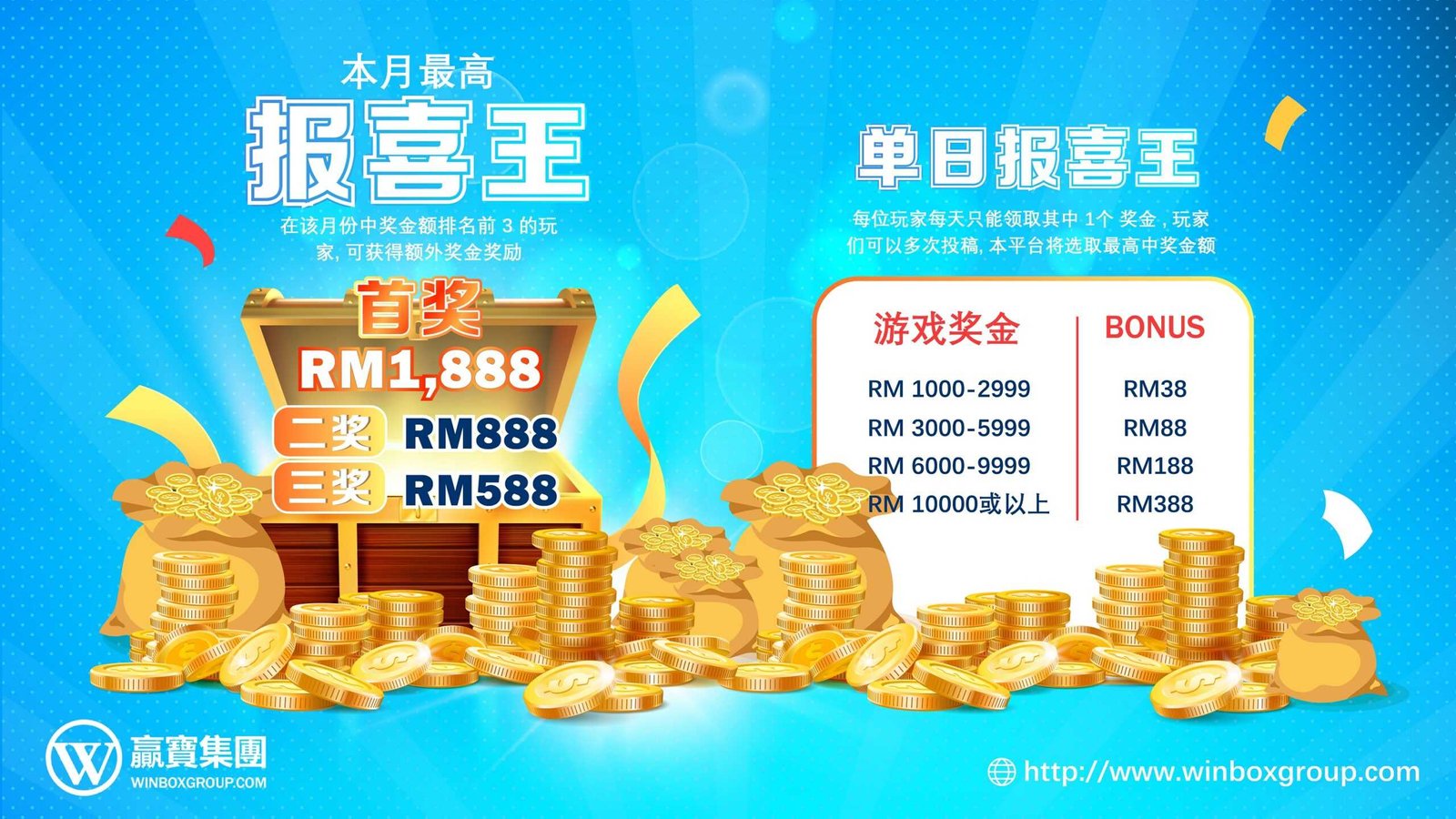 8. 冠军奖获得“报喜王”称号,并且获得RM1888 奖金